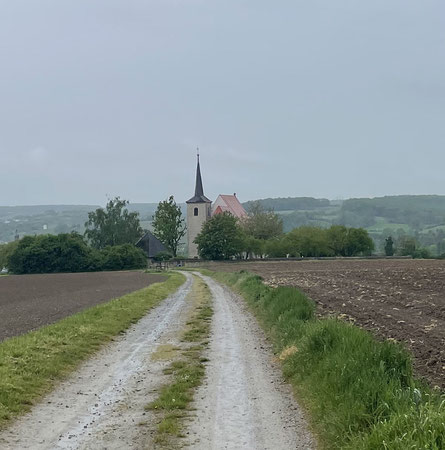 Die Bergkirche ist die „Schatztruhe“ Hohenfelds. Oberhalb des Dorfes steht sie frei mit weitem Blick über das Maintal und auf Kitzingen. Ihre erste urkundliche Erwähnung findet sie 1251, obschon
